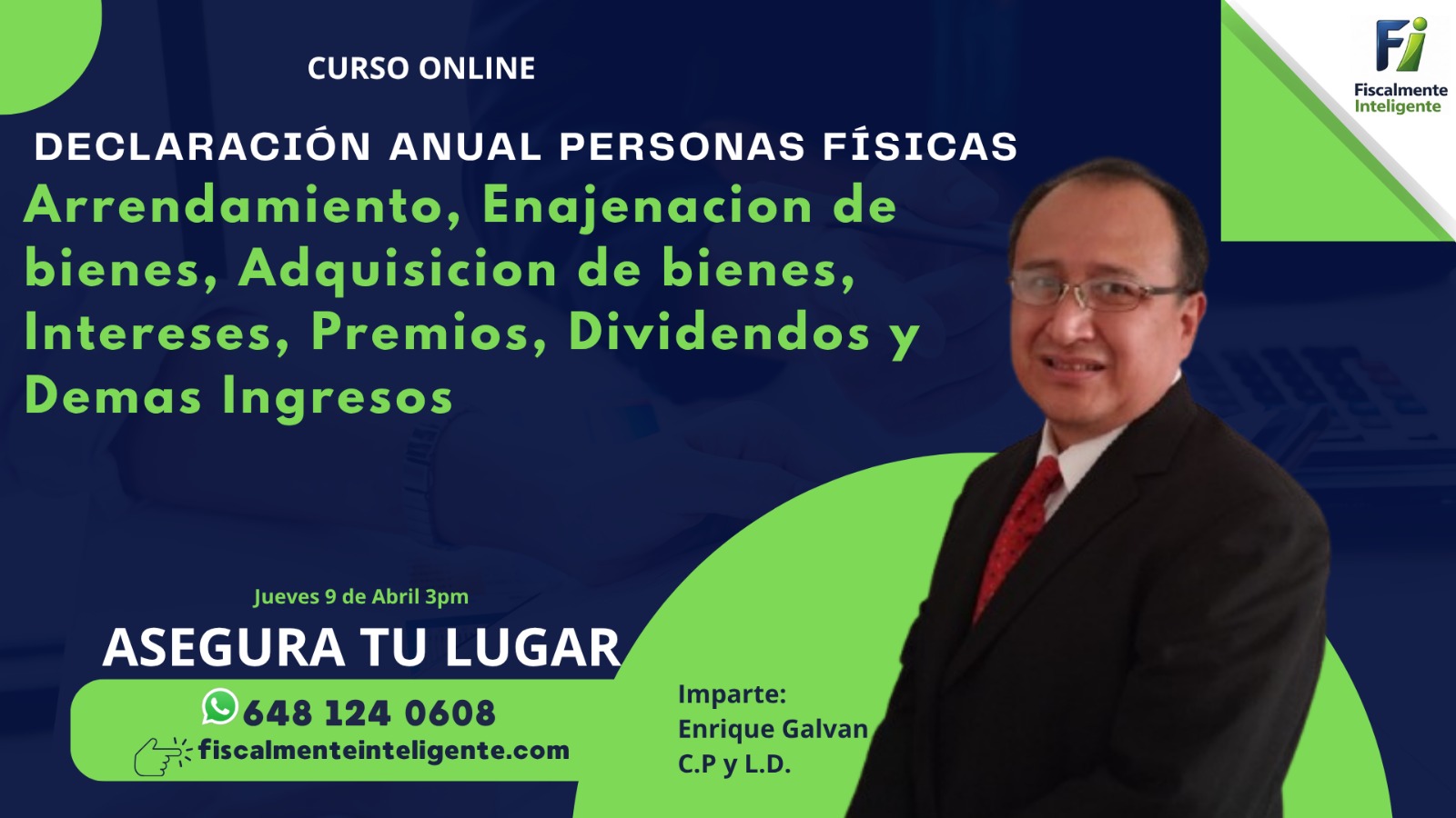 Domina la declaración anual de personas físicas con ingresos por arrendamiento, enajenación y adquisición de bienes, intereses, premios, dividendos y demás ingresos. Aprende a identificar tus obligaciones, aplicar deducciones y presentar tu declaración de forma correcta y sencilla ante el SAT.